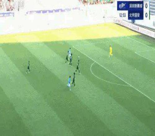 比赛第13分钟,埃杜·加西亚晃过侯森,小角度推射破门。深圳新鹏城1比0领先北京国安。