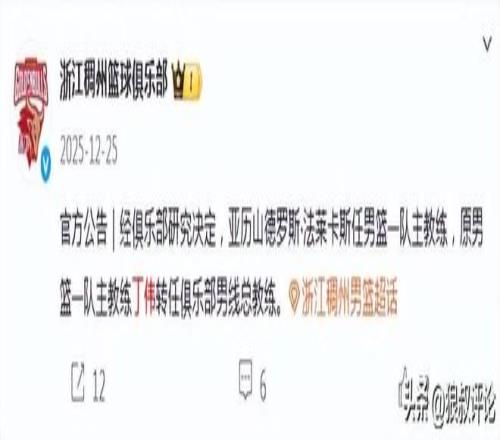 北京时间1月4日,根据天津男篮官方社媒的公示,经俱乐部管理层集体研究,现对天津先行者教练组成员分工进行如下调整:即日起,由张德贵指导担任球队主教练,由周金利指导担任球队助理教练。