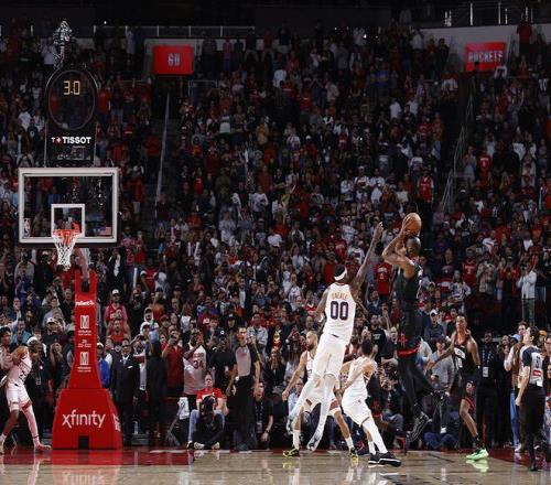 火箭本来有机会在终结阶段,维持反超的比分,但是杜兰特换回场上后,火箭又回到杜兰特单打,其他四人站着看的地步,火箭接连出现多次失误,导致比分被反超,凭借阿门的打三分,最终才将比分追平,双方多回合互相打铁,布克连续两次有机会绝杀或者绝平没有把握住,而杜兰特把握住绝杀的机会,火箭最终艰难险胜对手,避免连败,最终本赛季3杀对手。